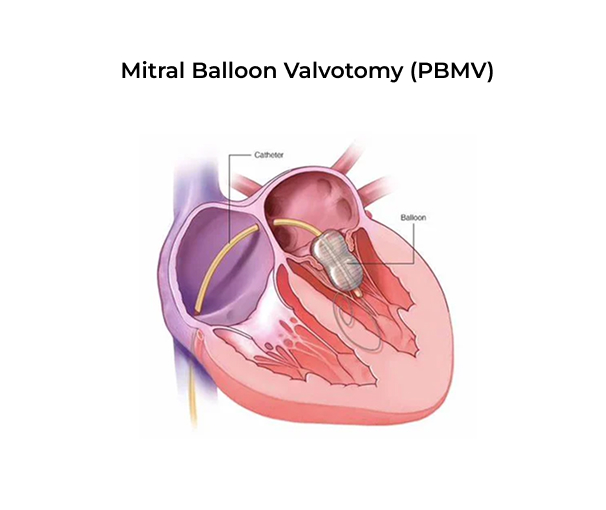 A balloon is threaded to the mitral valve and inflated to open it. Used for rheumatic valve narrowing